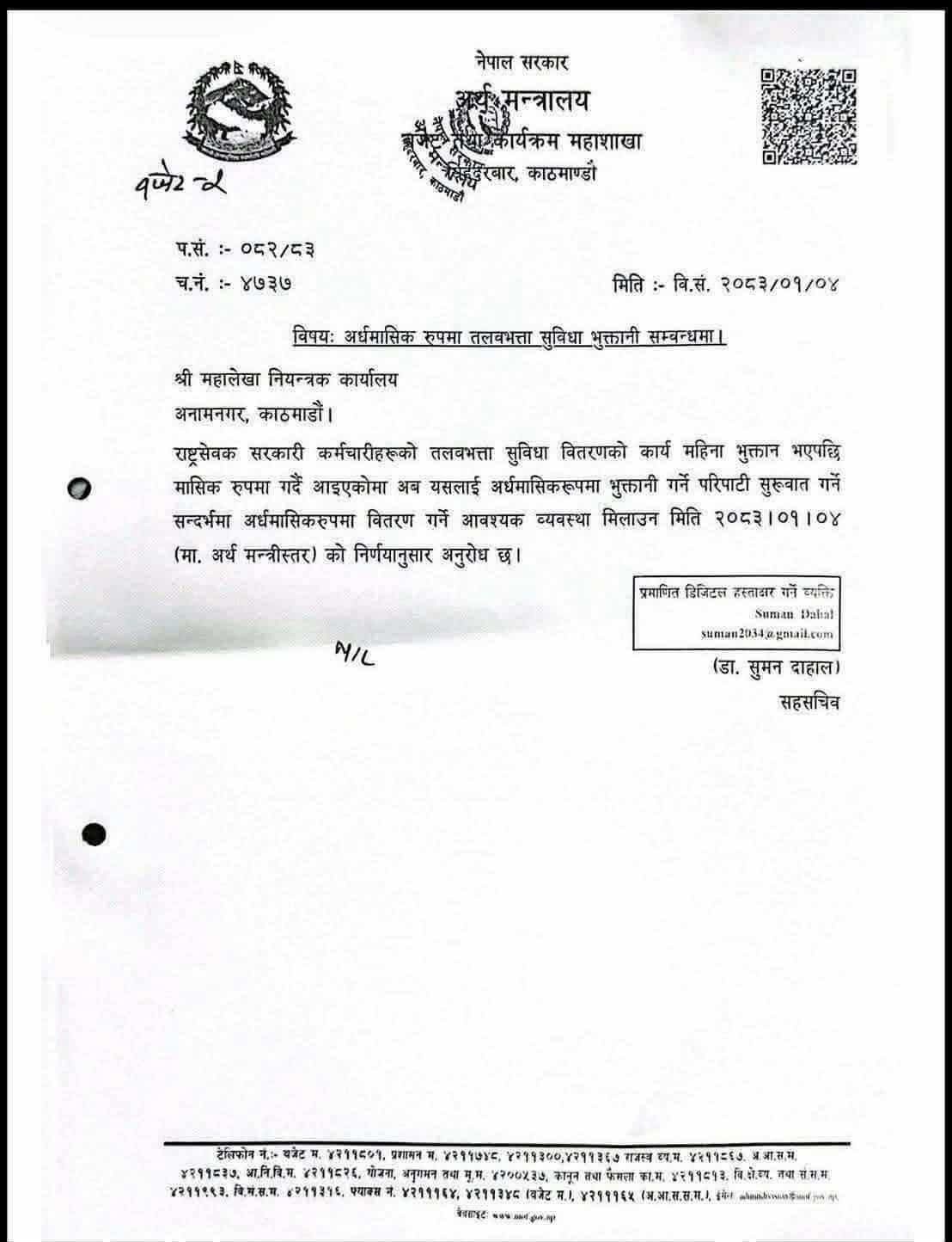 सरकारी कर्मचारीलाई अब १५/१५ दिनमा तलब
